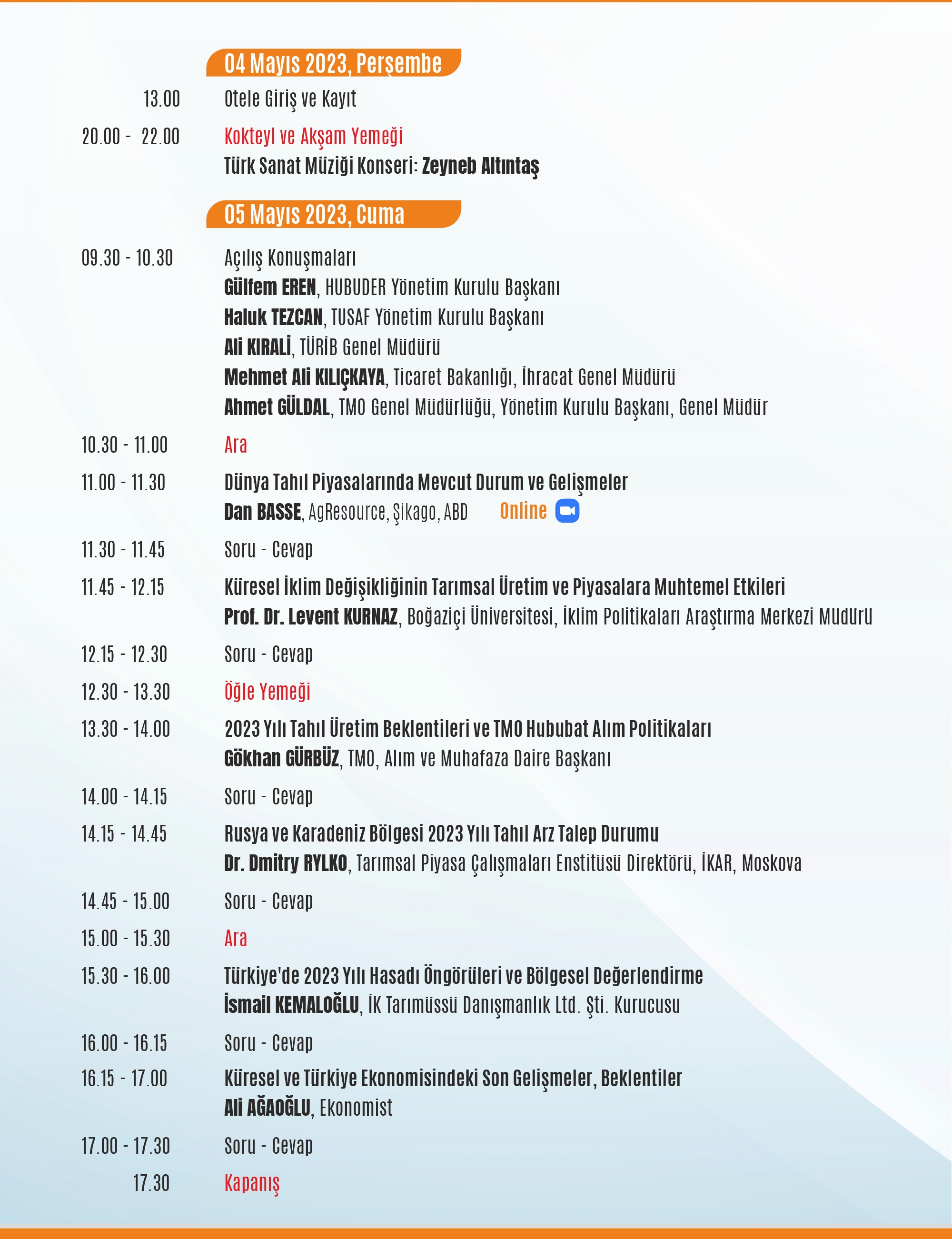 Konferansımızda; tahıl ticareti ve sektörümüzün geleceği, 2023 hasadı ve günümüz ekonomik koşulları çerçevesinde etraflıca ele alınacaktır. Son yıllarda dünyadaki tarım ve ekonomik alandaki hızlı değişimler ile bölgesel savaşlar nedeniyle Türkiye ve yurtdışından yoğun bir katılım beklediğimiz bu konferansımızda;